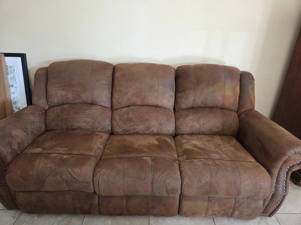 Couch with two reclining seats. Used condition. No rips or tears. Pet free / smoke free home. See additional listing with matching loveseat recliner. Cash only.