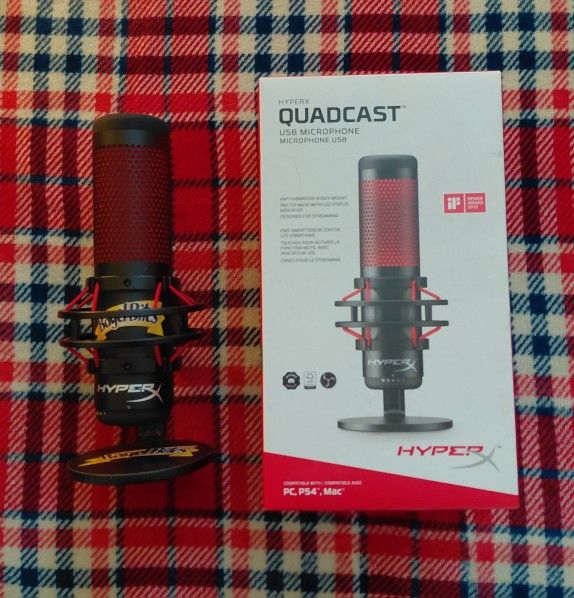 Both used. The HyperX Quadcast Mic is missing one washer, but it has not effected the recording audio. The HyperX Quadcast Mic is also branded.
