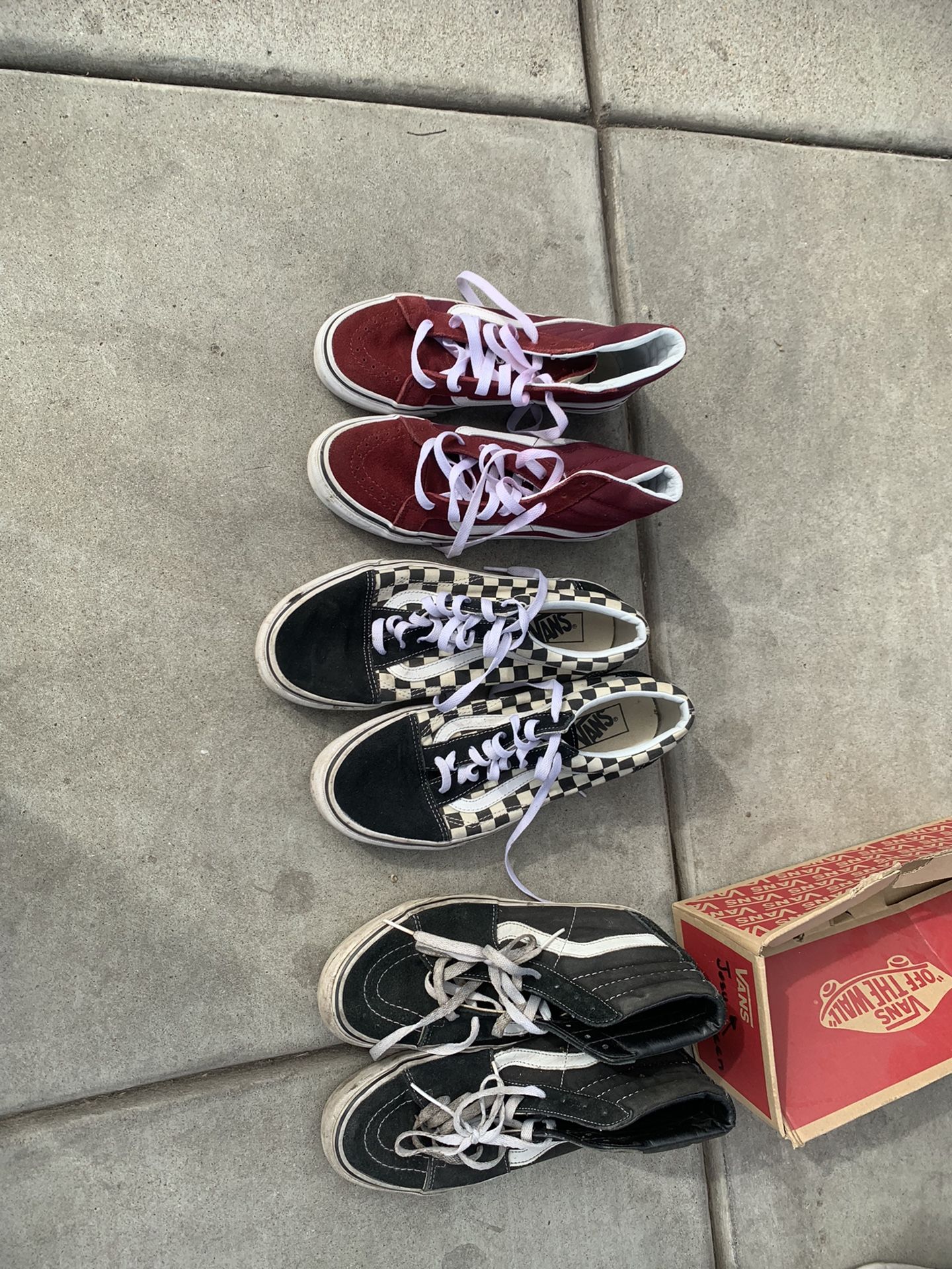 Vans and converse all are is decent condition any pair for $10 or all for $50 Purple color size 5.5 Black and white squares size 10 White color all white size 5.5