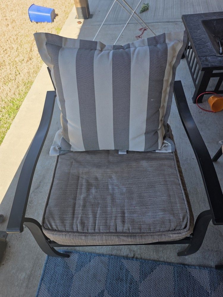 4 chairs of 1 seat + 1 chair 2 seater + 2 leg rest all with cushions. Chairs are originally from athome, and back rest cushions are target (threshold). Similar to Website pictures which is added. Price slightly negotiable