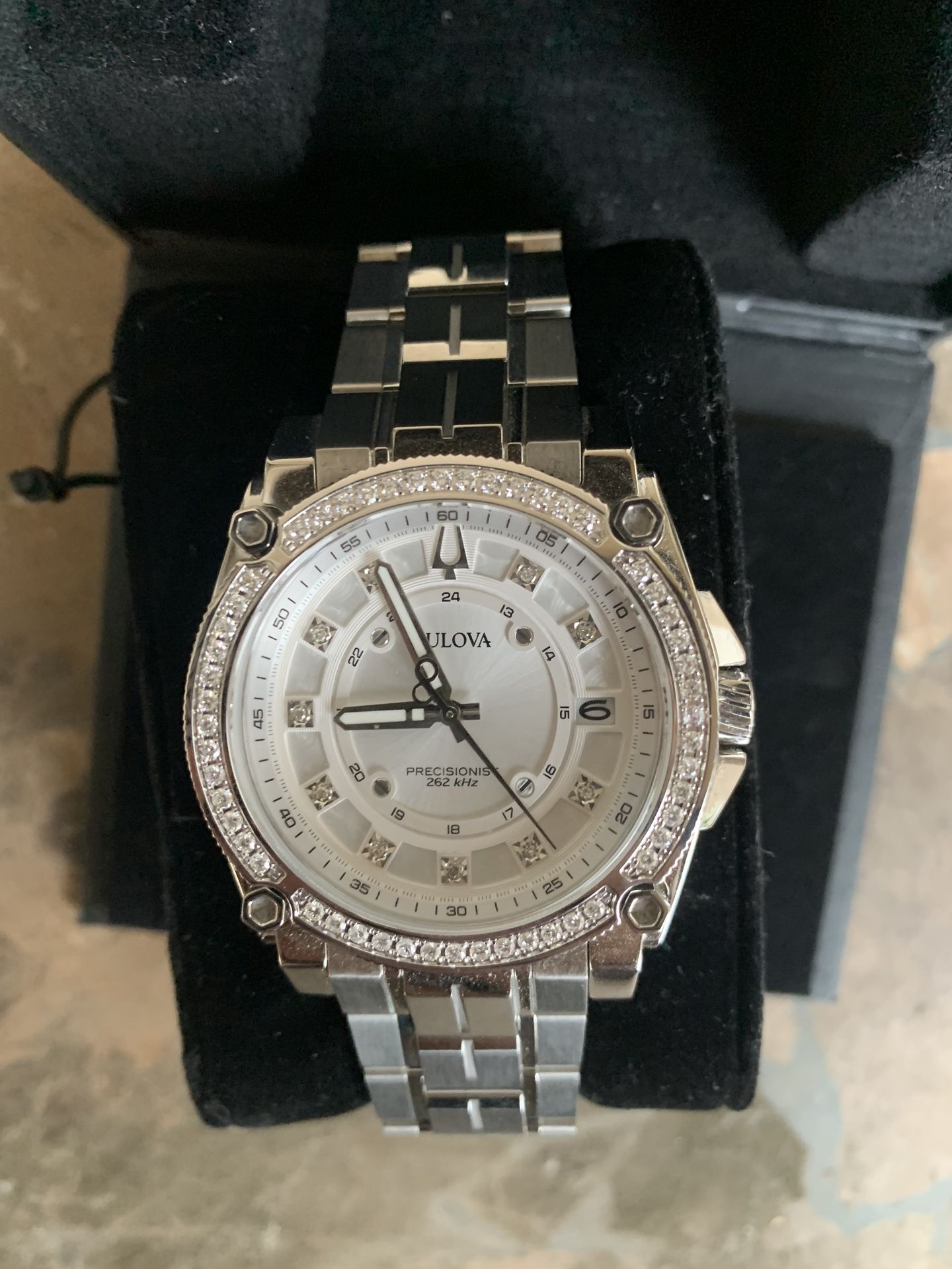 Watch is brand new and authentic comes with box and instruction manual never worn woman’s watch
