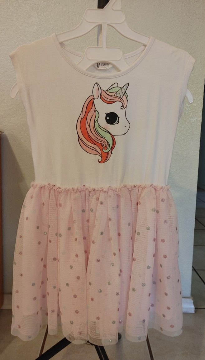 Glittery polka dots on tutu skirt which is lined, shimmery unicorn mane and horn