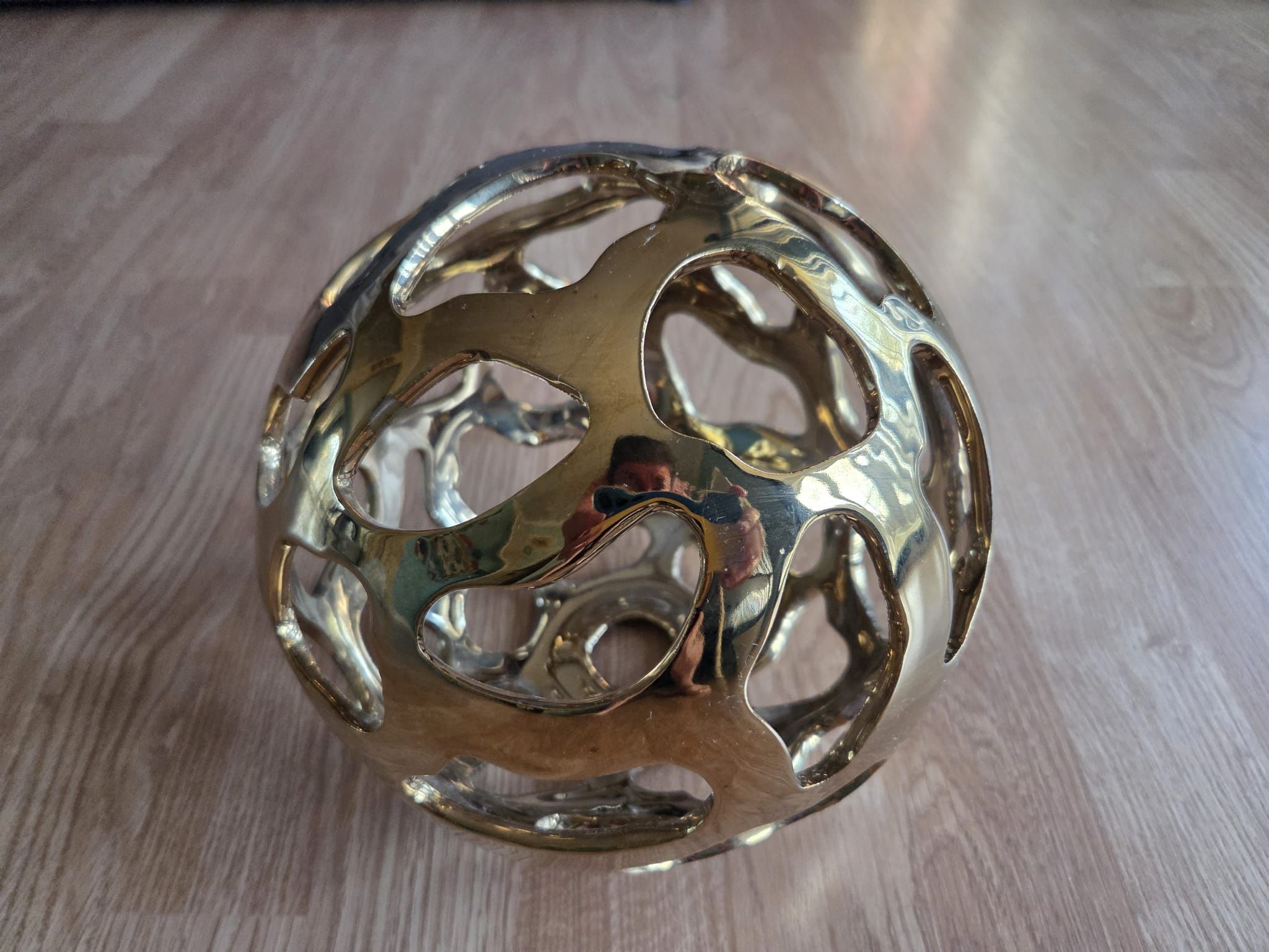 Porcelain or ceramic, 8 inch. in diameter, hollow, shiny, rich in color. The sphere will fit into any design.