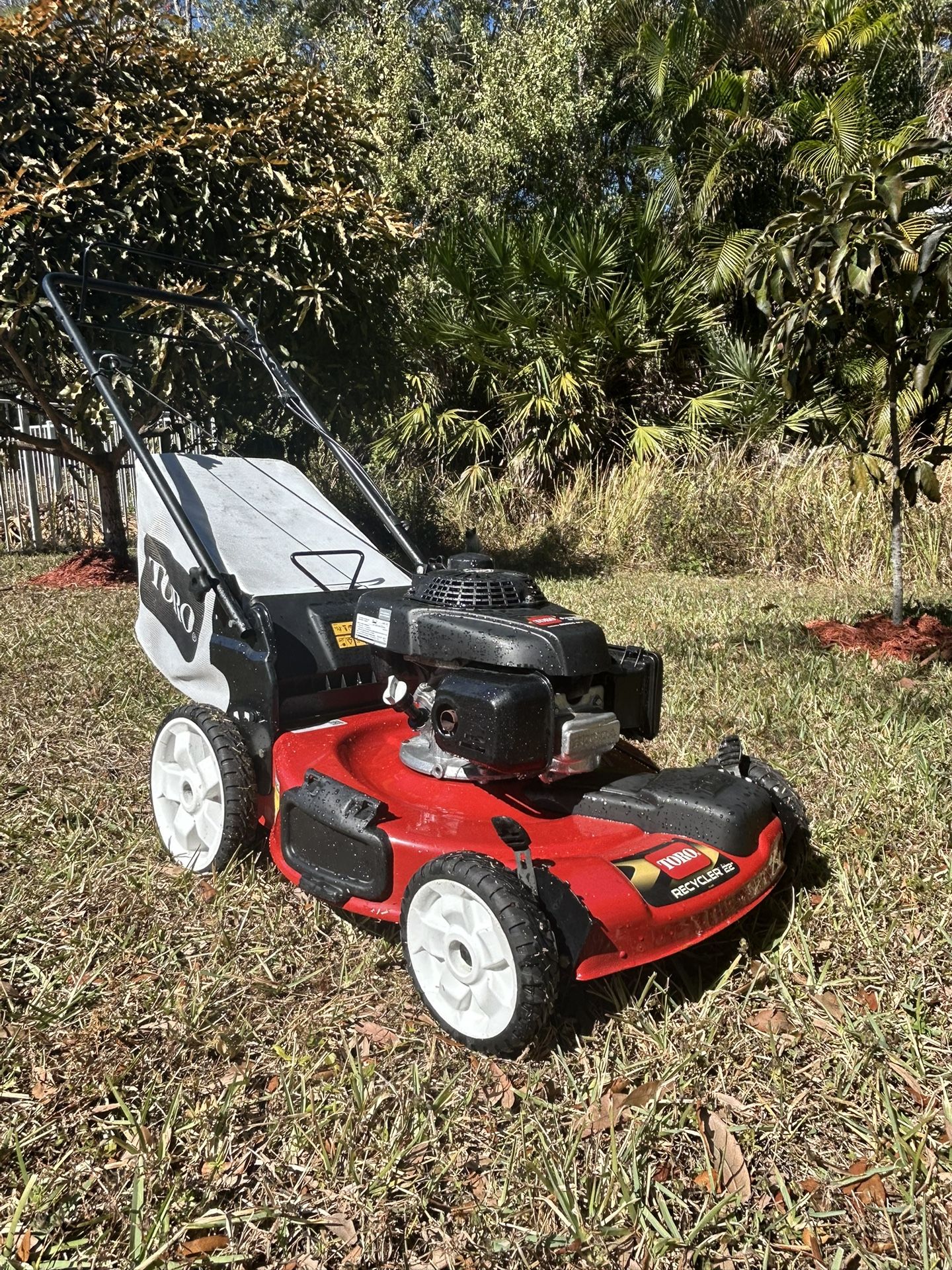 Like New Toro Self Propelled Lawnmower with Honda Engine. Used around 10 times then stored. Includes : * Reliable Honda engine that starts on the first pull * Self Propelled- Front Wheel Drive works excellent * Oversized Rear wheels for better control over rough terrain * 22”cut * Blade in excellent condition * Newer Air Filter * New oil change * 6 different grass height adjustments ( 1-4 inches) * Easy fold handle * BAGGER INCLUDED * Wash port for easy cleaning under deck * Come see and try for yourself * VERY CLEAN AND RELIABLE MOWER.