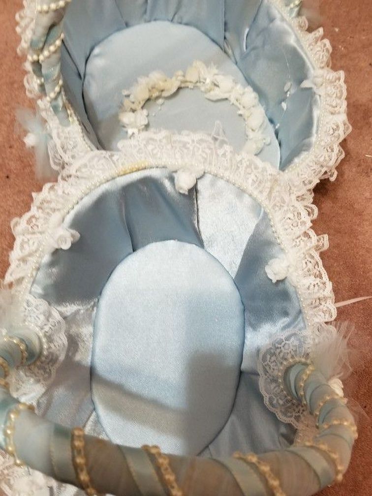 Basket, crown carrier, shoe carrier, money bag. White dress