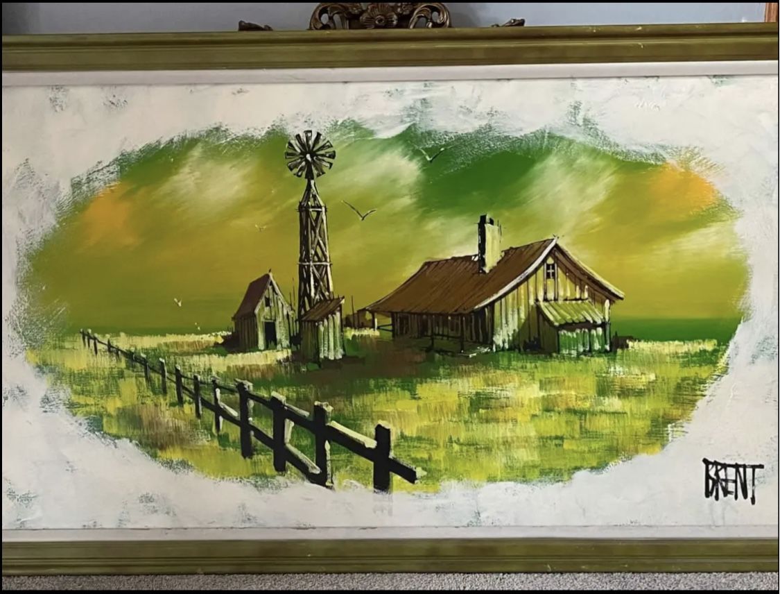 MCM painting Artist> BRENT 52” x 28” Large Bright Vibrant Colors