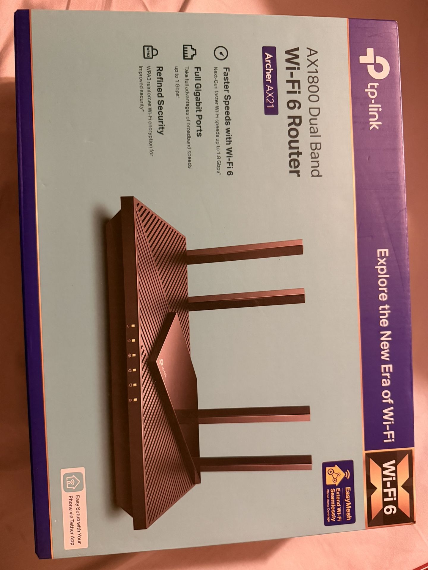 Router TP-Link Archer AX21 TOTALMENTE NUEVO, nunca usado. Wi-Fi 6 (AX1800) de doble banda para mayor velocidad y estabilidad. Ideal para streaming, videojuegos, trabajo en casa y múltiples dispositivos conectados. Brand new TP-Link Archer AX21 router, never used. AX1800 Wi-Fi 6 dual-band router for fast and stable internet. Perfect for streaming, gaming, work from home, and multiple devices.