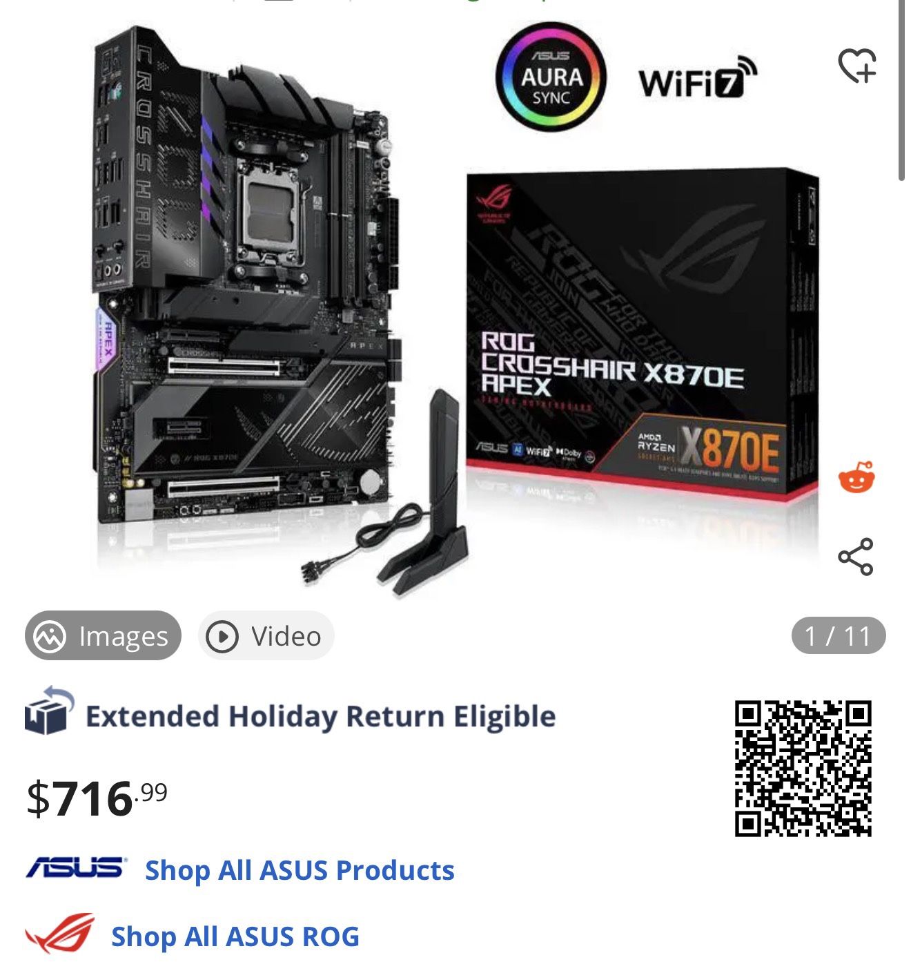 Brand New - ASUS ROG CROSSHAIR X870E APEX AMD X870E AM5 ATX motherboard, Advanced AI PC-ready