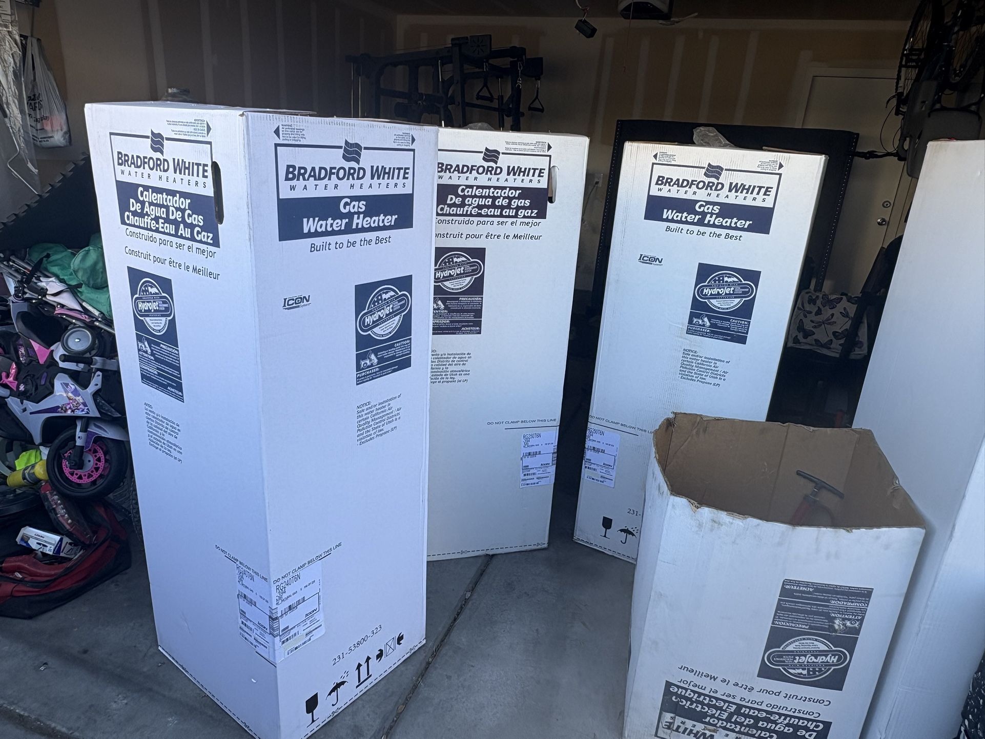 I am selling a 50, 40, 30, and 75 gallon water heater with gas and electric installation. New in the box with a 6-year warranty on the water heater. Write to me for more information.