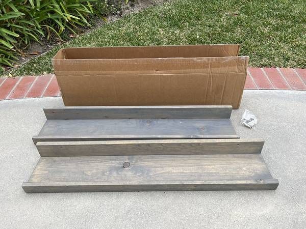 NIB Floating Wall Shelves (Grey Stained Pine Wood) Set of 2