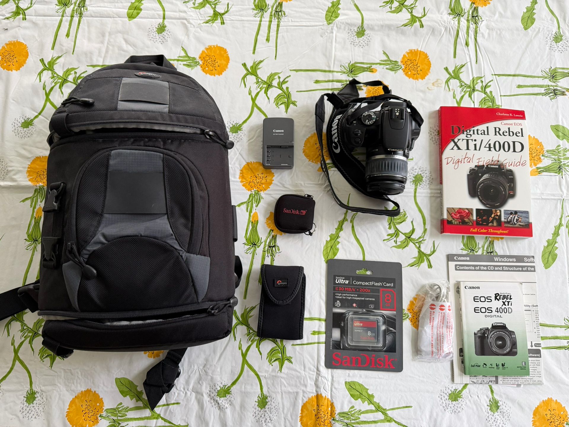 Includes two SanDisk storage cards, owners manual, and instruction book