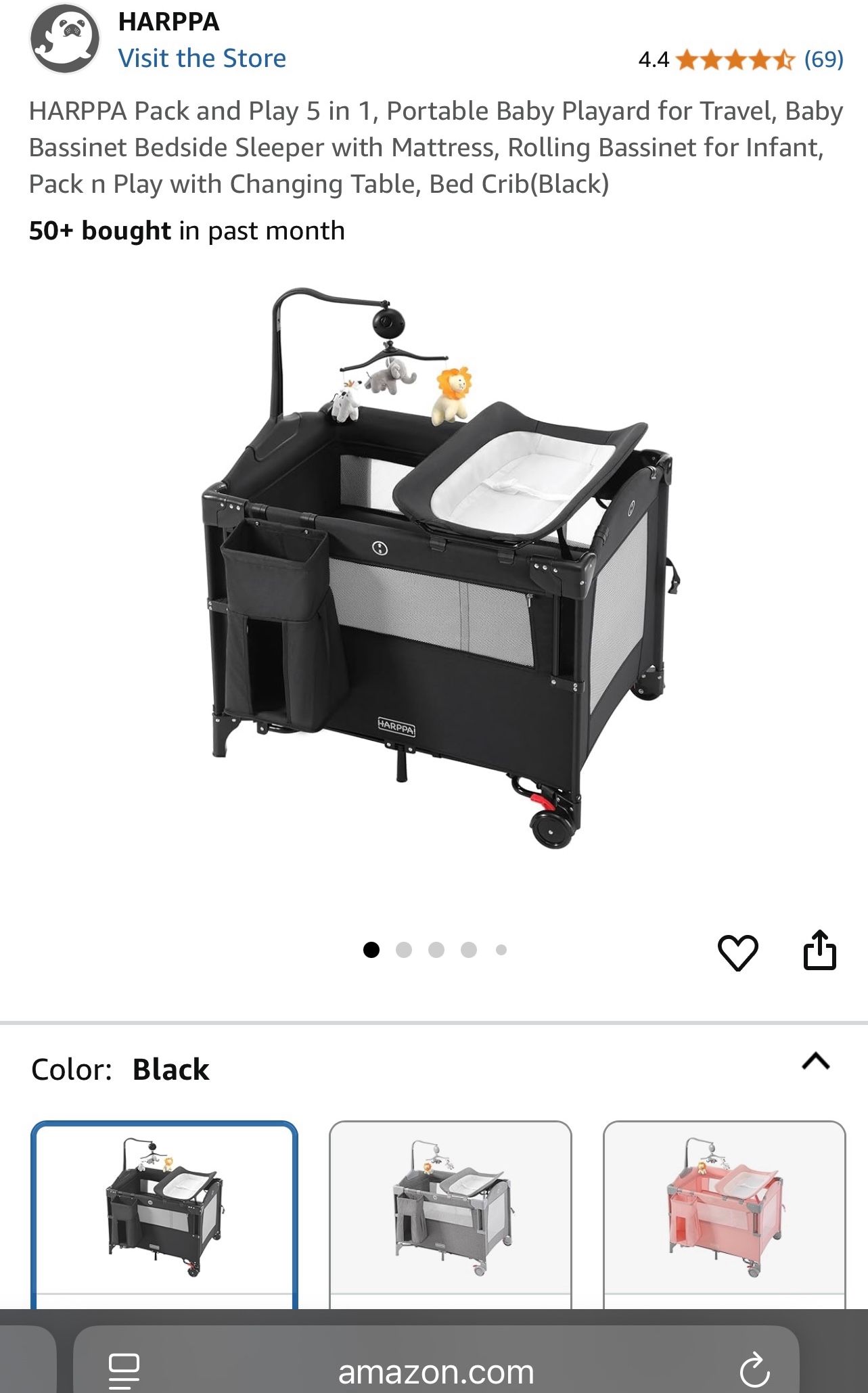 HARPPA Pack and Play 5 in 1, Portable Baby Playard for Travel, Baby Bassinet Bedside Sleeper with Mattress, Rolling Bassinet for Infant, Pack n Play with Changing Table, Bed Crib(Black)