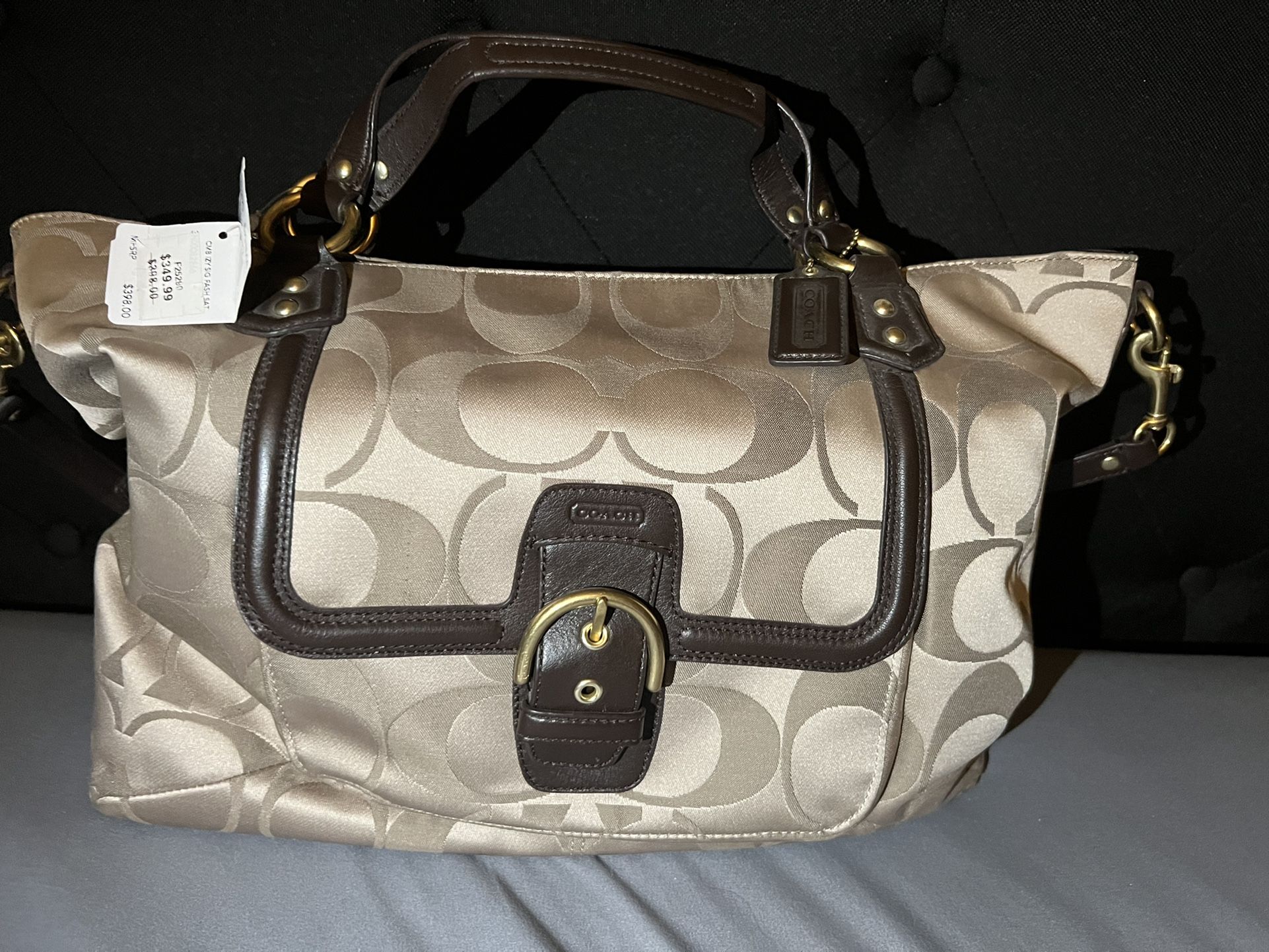 Brand new coach bag. Never used with tag. Going through bags I do not use anymore which is why I am selling. Color: Brown with gold accents