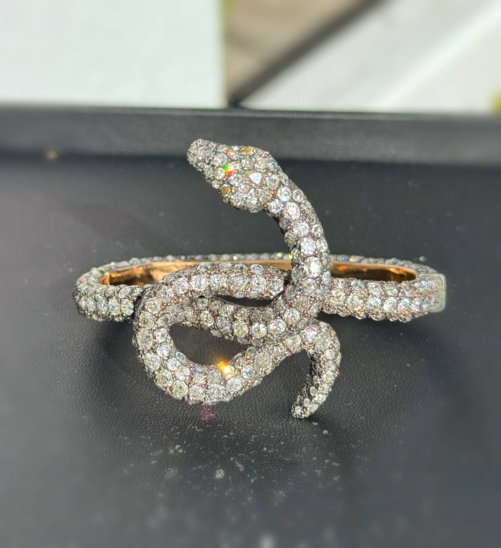 This gorgeous large snake bracelet is made of 10k solid yellow gold and 925 sterling silver all over it bussin with natural diamonds. πStyle of bracelet: Snake. Size: 7.75inches length and 7.00mm width. Total weight: 52.2 grams.π€π₯° Condition: Good. The total carat weight of the natural diamonds is approximately 50.00CTWπ§π¬π. Handsome and stylish. Popular design. The best choice for you! Perfect gift! β€οΈππ We buy Rolex and Audemars, patek . Do layaway in VIP PAWN Coral Springs π₯ππΈ