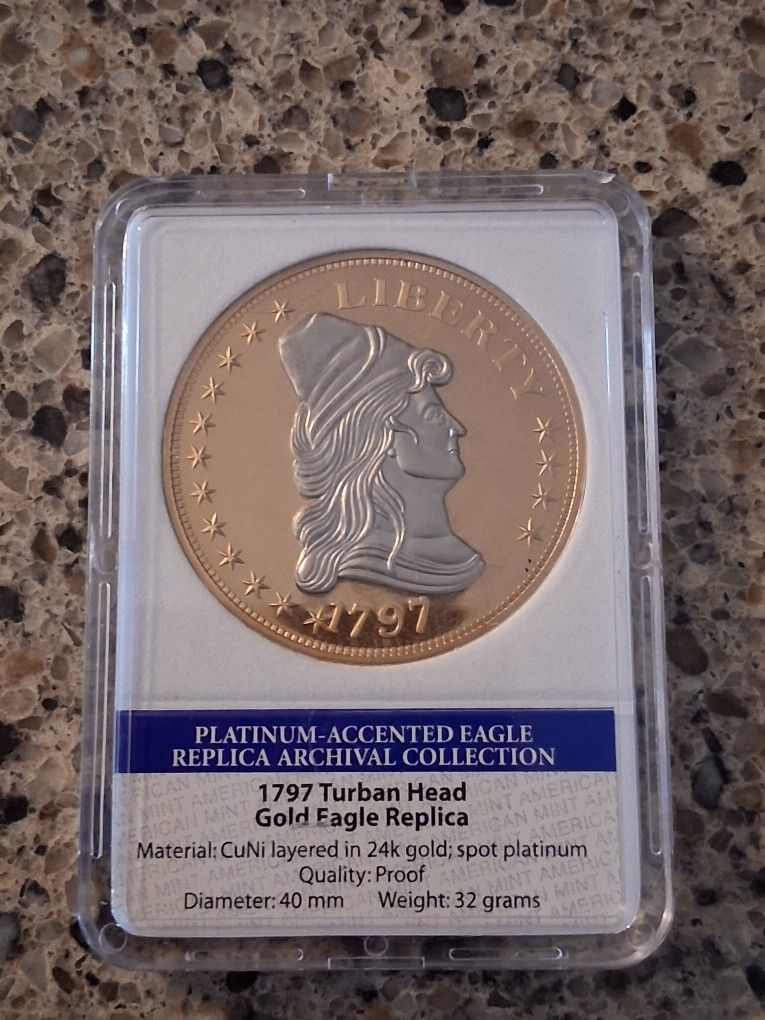 Gold and platinum replica coin proof.