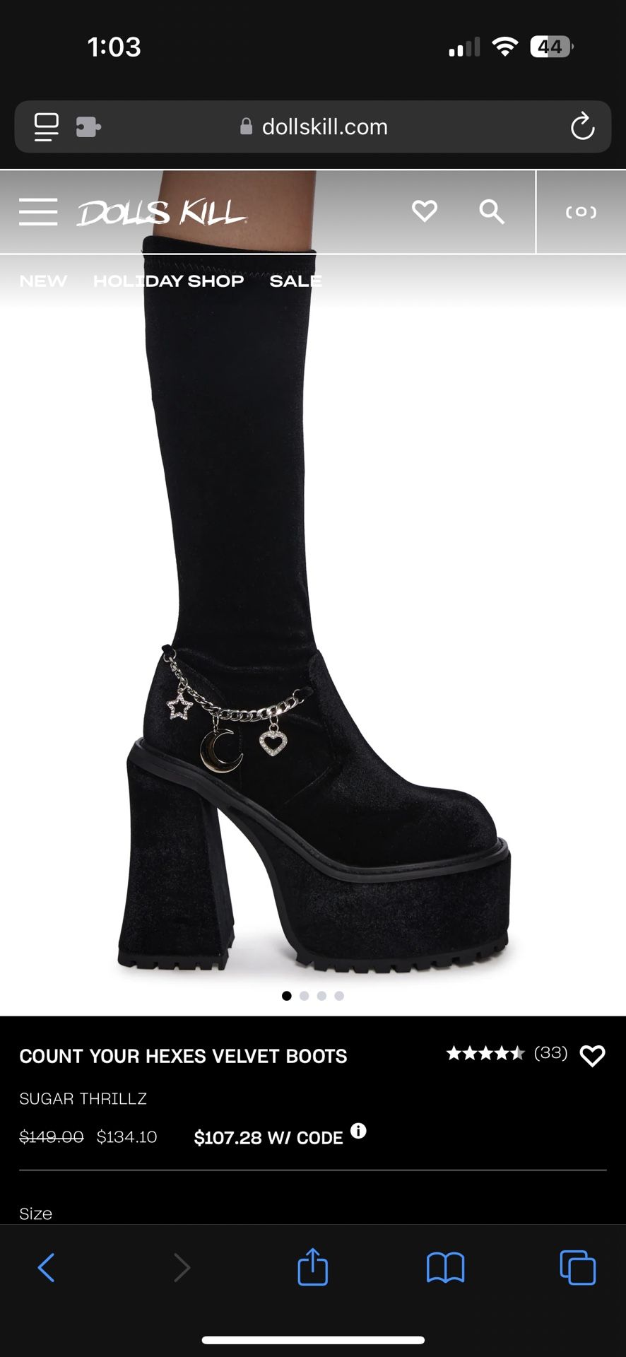 Sugar thrillz black velvet platform boots Size 8 woman Worn only once