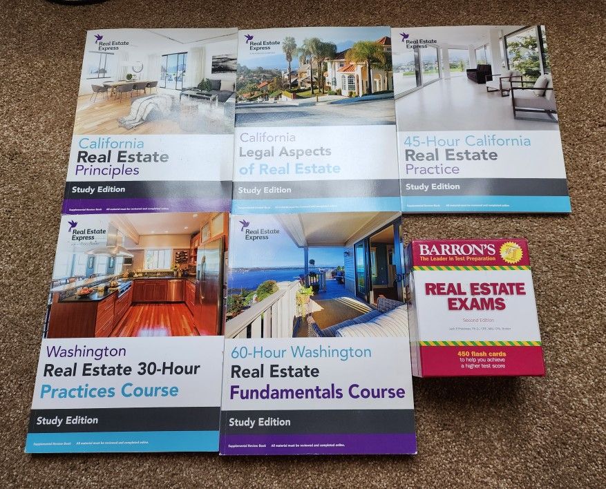 Real Estate Express school books for California and Washington, along with a box of flashcards. I can sell all together or only 1 state.