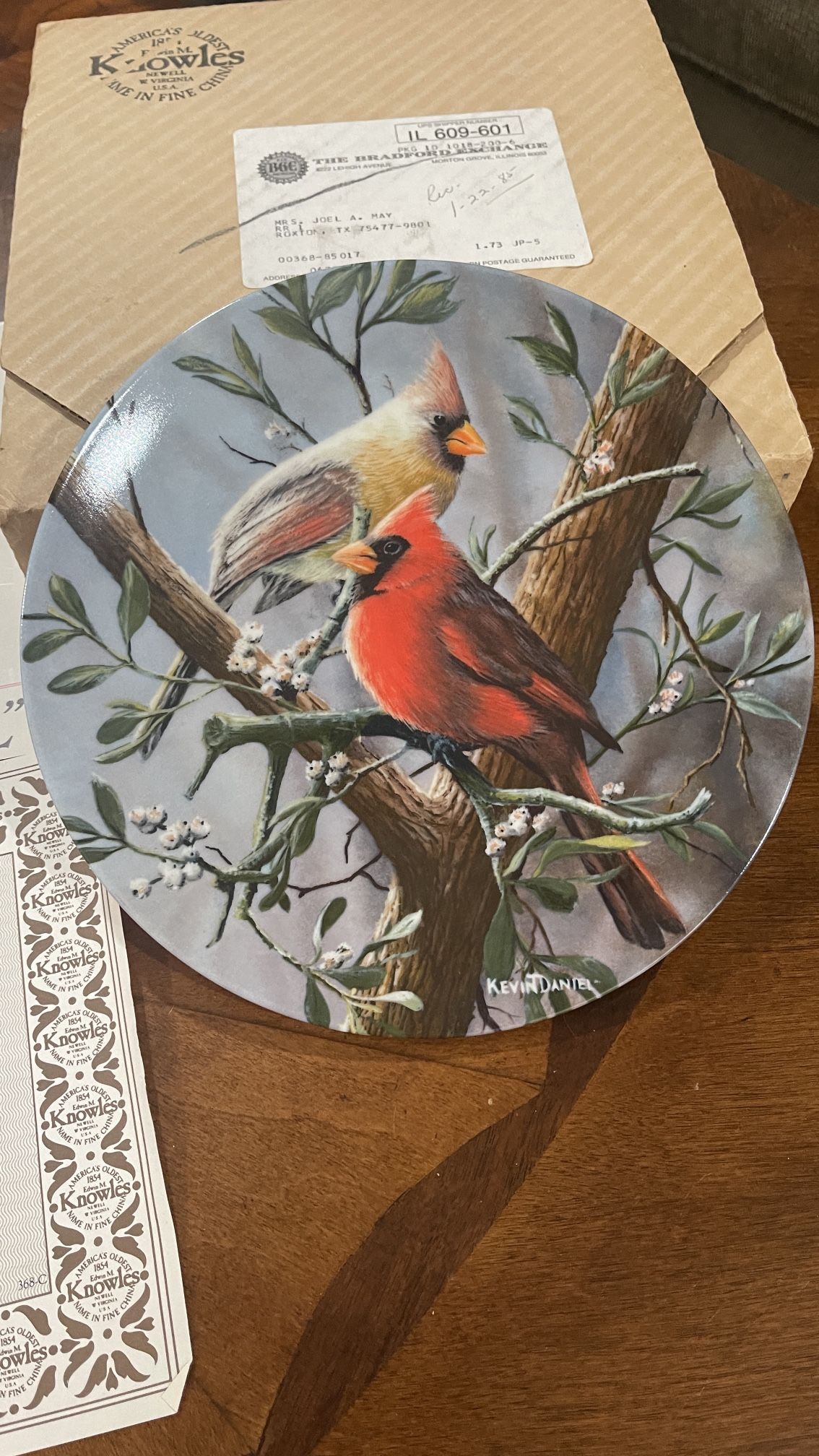 Knowles The Cardinal by Kevin Daniel Fine China Collector Plate Vtg.