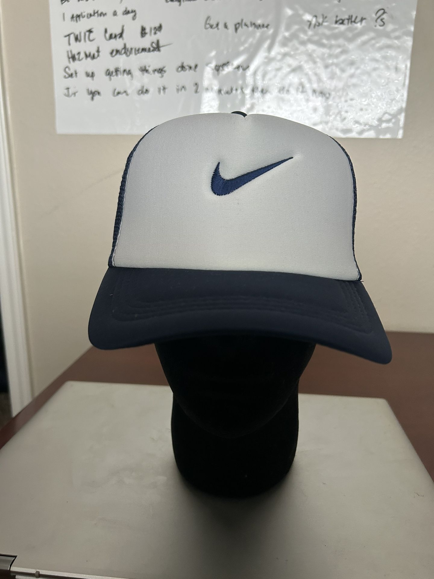 Blue and white Nike trucker hat