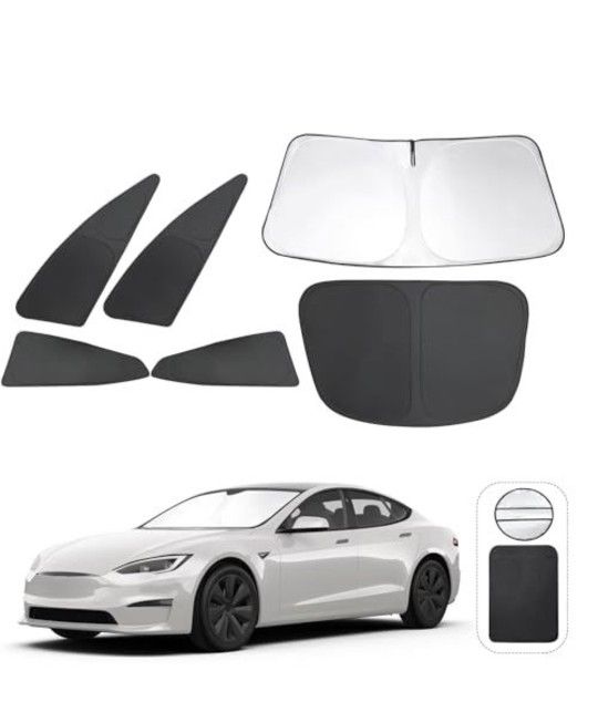 windshield sunshade custom accessories foldable side rear window shade cover full set privacy protection keeps car cool Tesla S 2023-2025