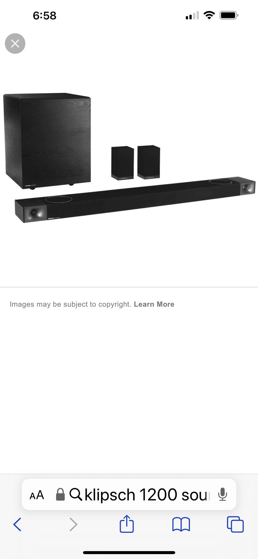 Brand new in the box. This is a very impressive sounding system. Comes with a 12” sub woofer for earth shaking sound. It’s almost 50” wide. This is a serious system.