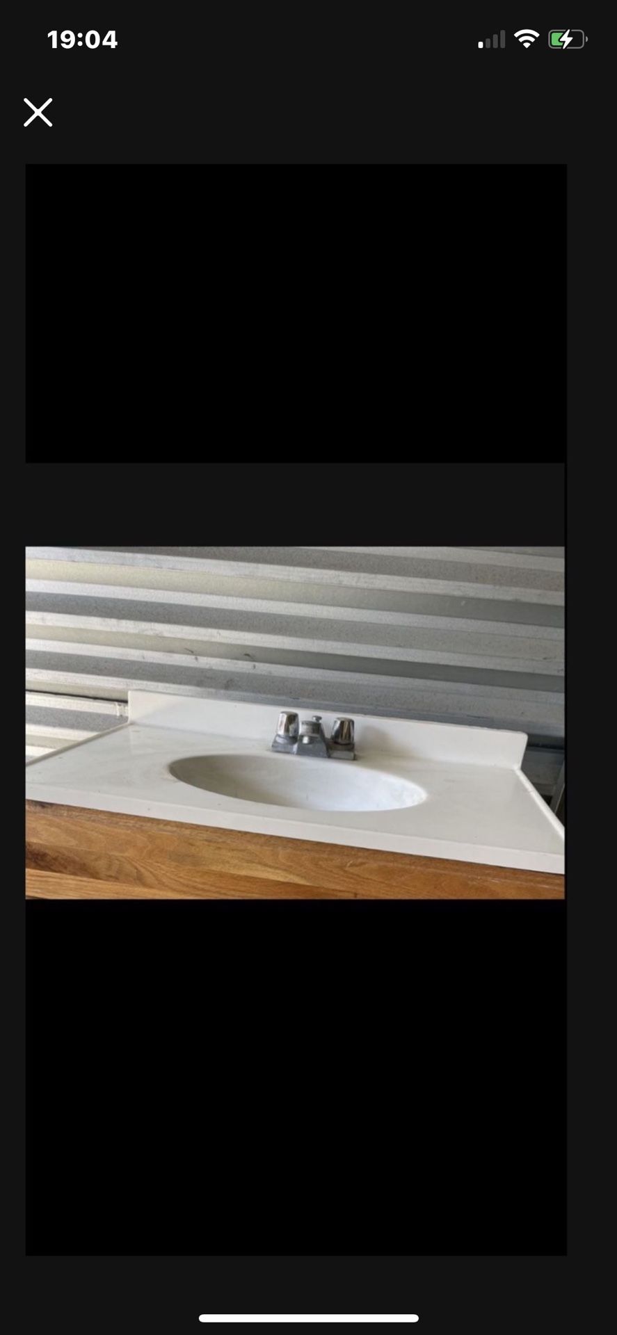 Includes faucet. 30.5” wide, 18.5” deep