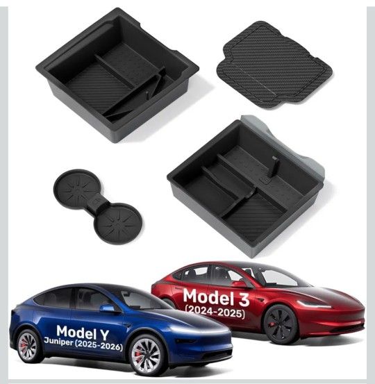 [Tailored Fit for Latest Tesla Interiors] Designed exclusively for Tesla Model Y Juniper (2025–2026) & Model 3 Highland (2024–2026), this 4-piece set delivers a seamless, OEM-like fit. The premium matte-black finish blends perfectly with Tesla’s interior, elevating both style and practicality [Maximize Storage, Minimize Mess] Includes a center tray, armrest tray, hidden box, and cup holder. The innovative dual-layer sliding design with hidden compartments transforms cluttered spaces into smart storage, keeping your essentials secure, organized, and within easy reach [Dual-Layer Sliding Design] Is your Tesla’s center console a messy, bottomless pit? Two-tier compartments maximize Tesla center console space — quick access to cards, coins, and sunglasses on top, with larger items stored below. Smarter organization, cleaner interior, faster reach [Noise-Free Driving Experience] No more annoying shaking sounds! 2025 upgraded liquid silicone liners minimize rattling and secure your belongings in place. Enjoy a smoother, quieter ride — your essentials stay cushioned, stable, won’t shift or slide, and noise-free [Install in 10s, Easy Cleaning] Drop the tray into your Tesla center console for an instant, perfect fit — no tools needed. The removable design makes cleaning effortless: wipe, wash, or lift it out to shake off dust in seconds [Zanch Worry-Free Support] Your satisfaction comes first. Our dedicated Tesla support team responds quickly and provides clear, hassle-free solutions