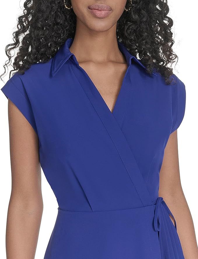 Calvin Klein Women’s Cap Sleeve Collared Midi Shirtdress – Tie Waist, Size 4, Blue, New