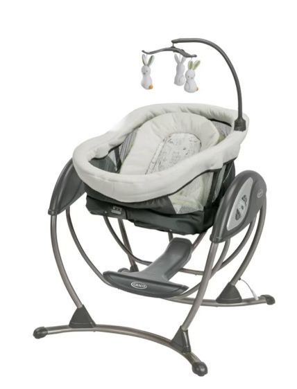 Gently lower the swing seat to create a safe and comfortable spot to rest without being disturbed. The swing seat reclines to a rocker with an easy, one-hand motion, giving your baby a safe and comfortable spot to rest without having to be moved from the swing. Graco DuoGlider uses the same gentle motion as your nursery glider to soothe baby, and also features two-speed vibration, six swinging speeds, classical melodies and nature sounds and more to keep baby soothed and comfortable. You can plug it in or use batteries for two convenient options. • Swing seat doubles as a rocker giving you flexibility to provide your baby a safe, soothing spot to play • Easy one-hand recline lever allows you to lower the seat into a rocker without having to move your baby • Soothes with the same gentle motion you use when cuddling and comforting baby in your nursery glider • Vibration with two gentle speed settings keeps baby relaxed • Option to plug in or use batteries for convenience • Cozy seat combined with plush body support and a three-position recline offers optimal comfort for baby