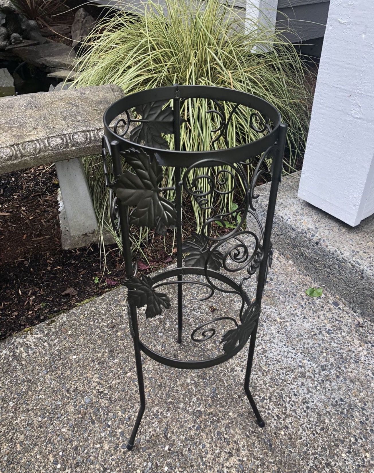 Partylite metal grape vine plant or bird bath stand. Measures 26" height × 8.5" width. Rubbed bronze grape vine design. Can be used indoors or outdoors. Asking $10 or best offer.
