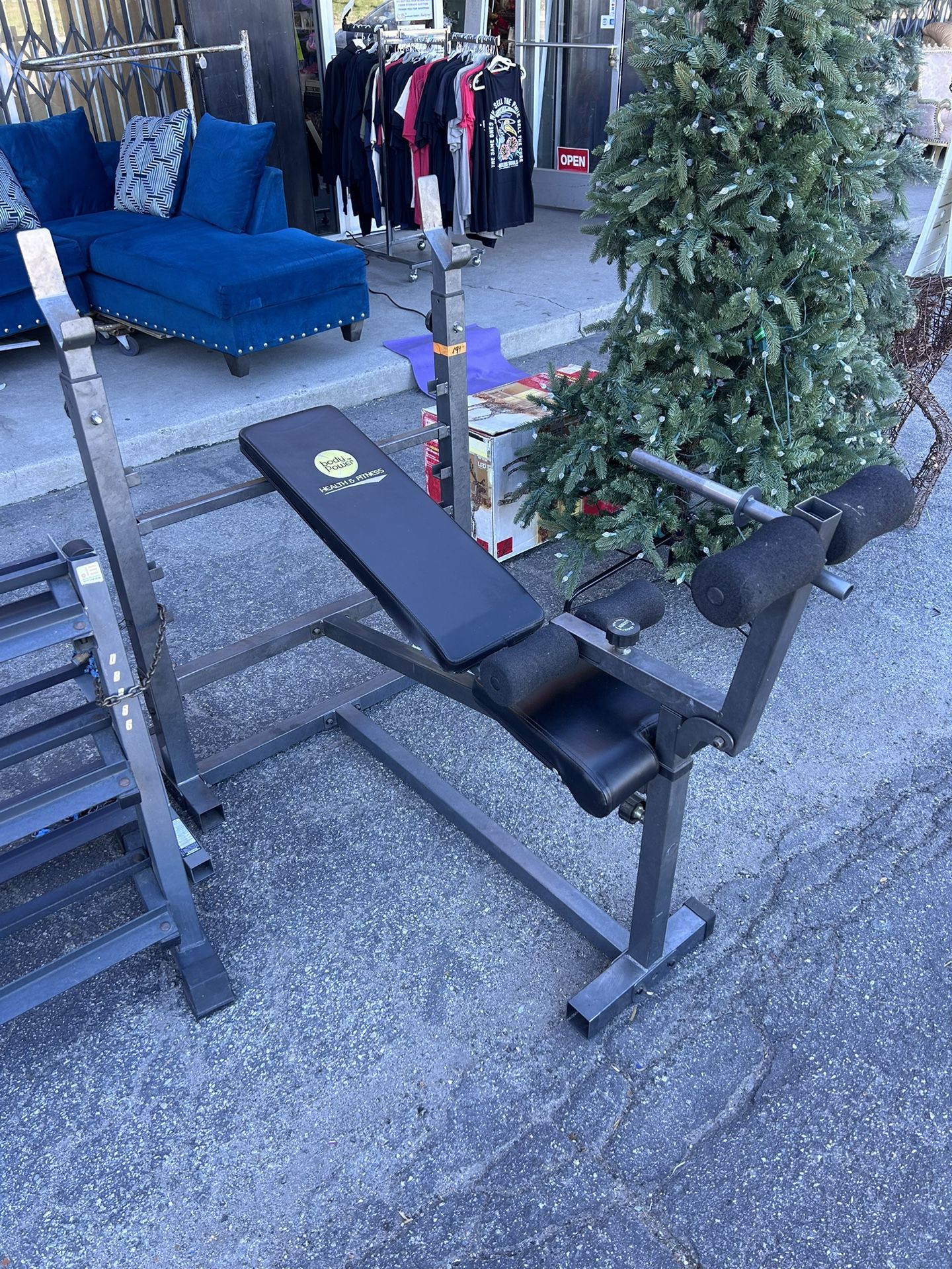 Selling a sturdy Body Power Health & Fitness weight bench and rack combo that's perfect for a home gym setup, featuring an adjustable incline/decline and leg/ab attachment. 🏋️♂️ LIMITED TIME SALE ‼️ 📏 Dimensions: approx. 38 in. (W) x 58 in. (D) x 53 in. (H) ✅ Preowned, in Great Condition. Please let us know if you have any questions! NOTE: Delivery for a fee, Pickup at Gina’s Bargain Thrift in San Bernardino! Pay with Cash, Debit, or Credit in person. Thank you! Open Monday-Saturday, 9AM-5PM! 945 E Base Line St, San Bernardino, CA 92410