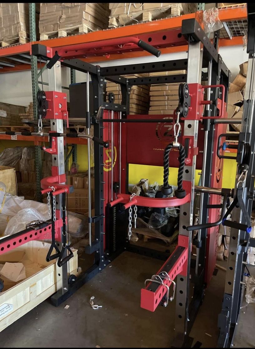 Heavy duty smith machine with lat pull,lower row , double crossover with 2 260lb weight stacks. Land mine, pull up tower, and all accessories . Comes with commercial fully adjustable bench, Olympic bumper plate set with barbell and clips. This set up will cost you north of 5,000.00 if you order online!!!! 3100.00 available in Red or black firm please no offers Also have rubber hex dumbells 5-100 available for additional cost