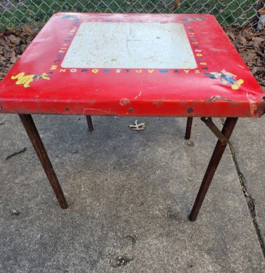 Vtg metal children's Disney table. 20x20x17 in size. Does have rust, folding legs, all original Pick up in elmwood park