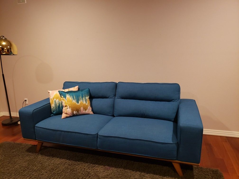 Excellent used condition large teal blue/green sofa couch. MCM style. Just doesn't match in our new house. 88" long x 34" high x 38" deep No pets or smokers $700