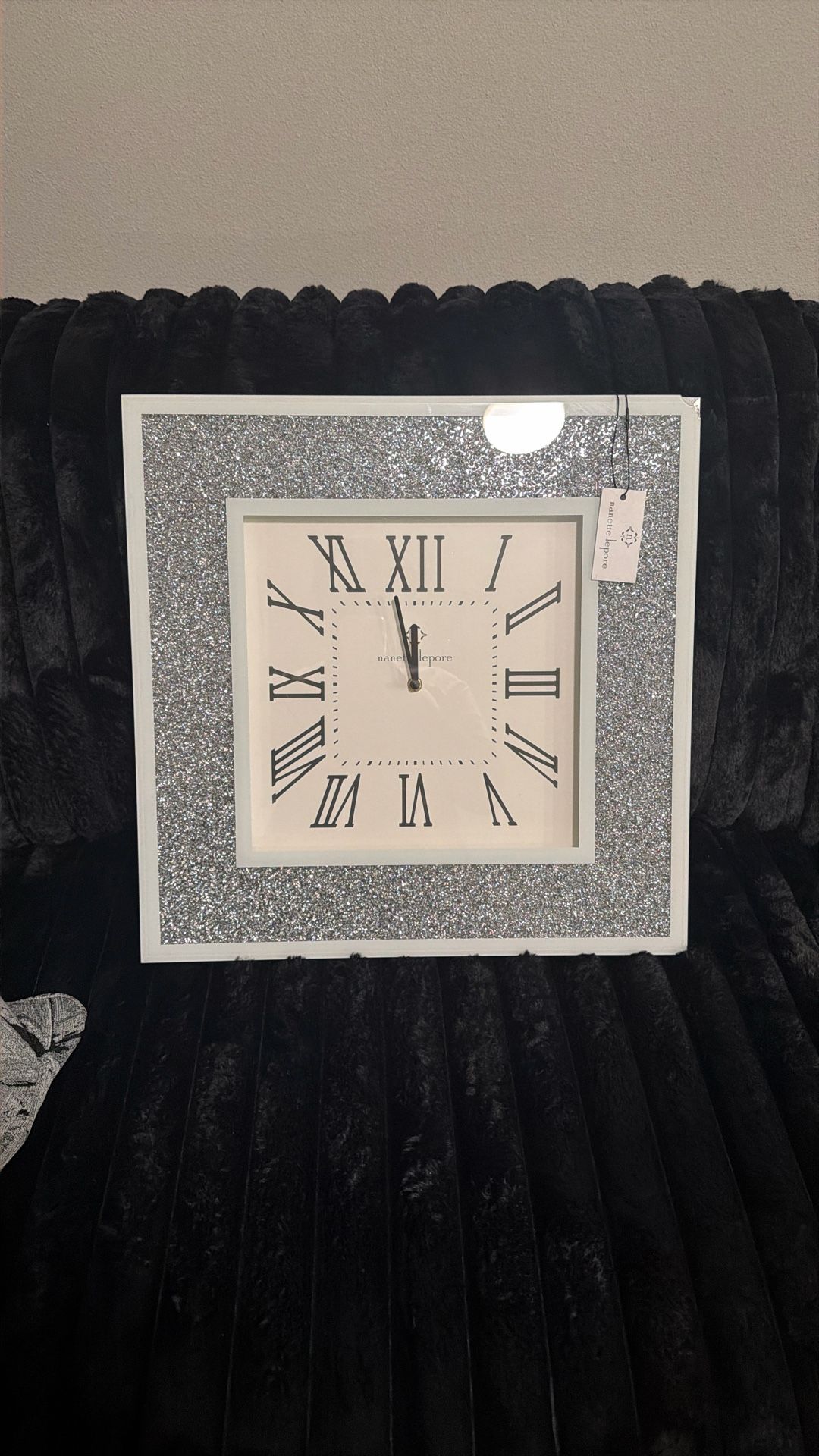 I bought this clock over a year ago & never hung it up nor used it, just kept it in my closet & now I’ve changed my living room from silver to gold & no longer needs . Does have a little crack on the corner as pictured .