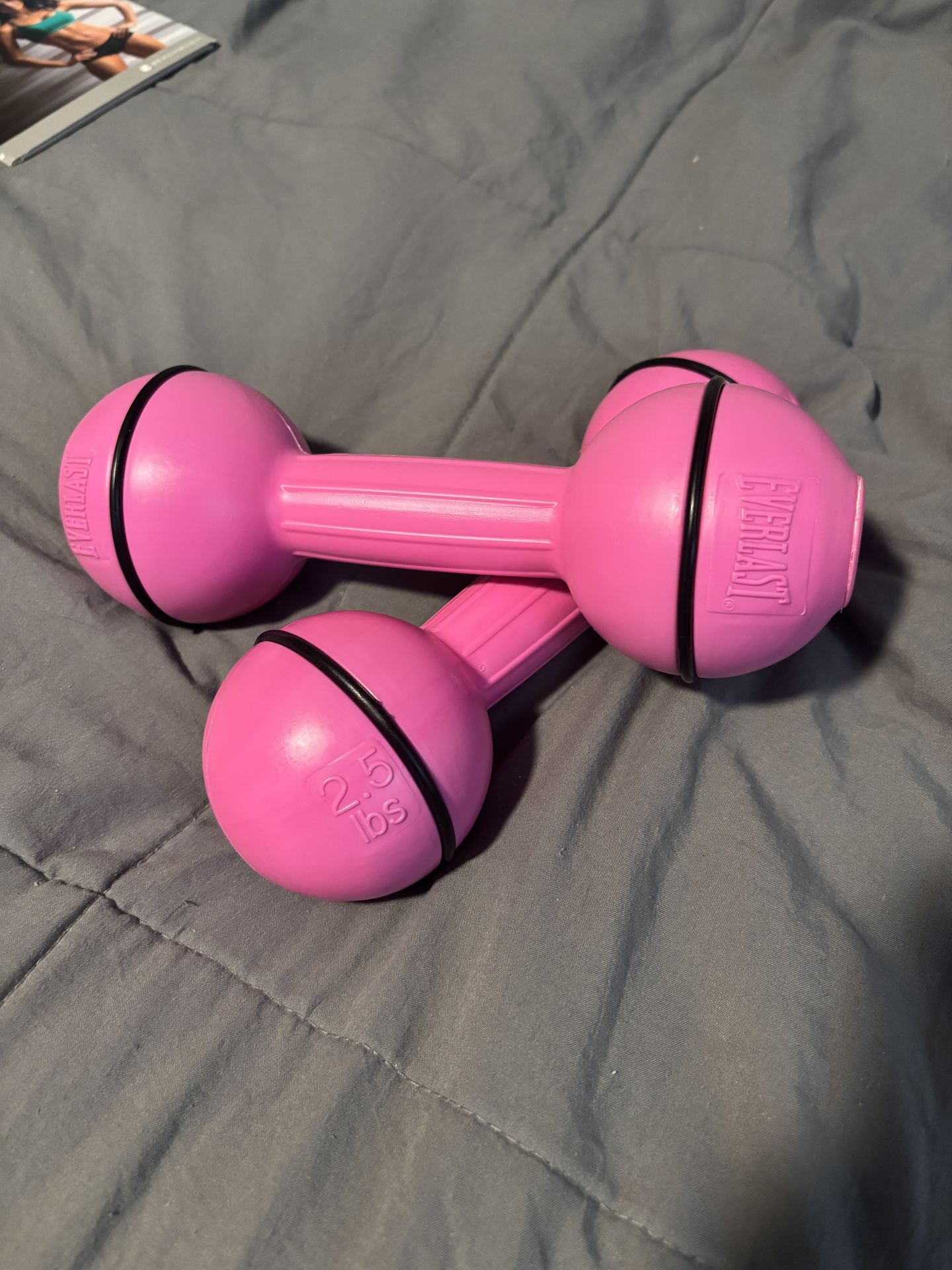 Everlast's vibrant pink 2.5 dumbbells. Ideal for active play. Cross posted.