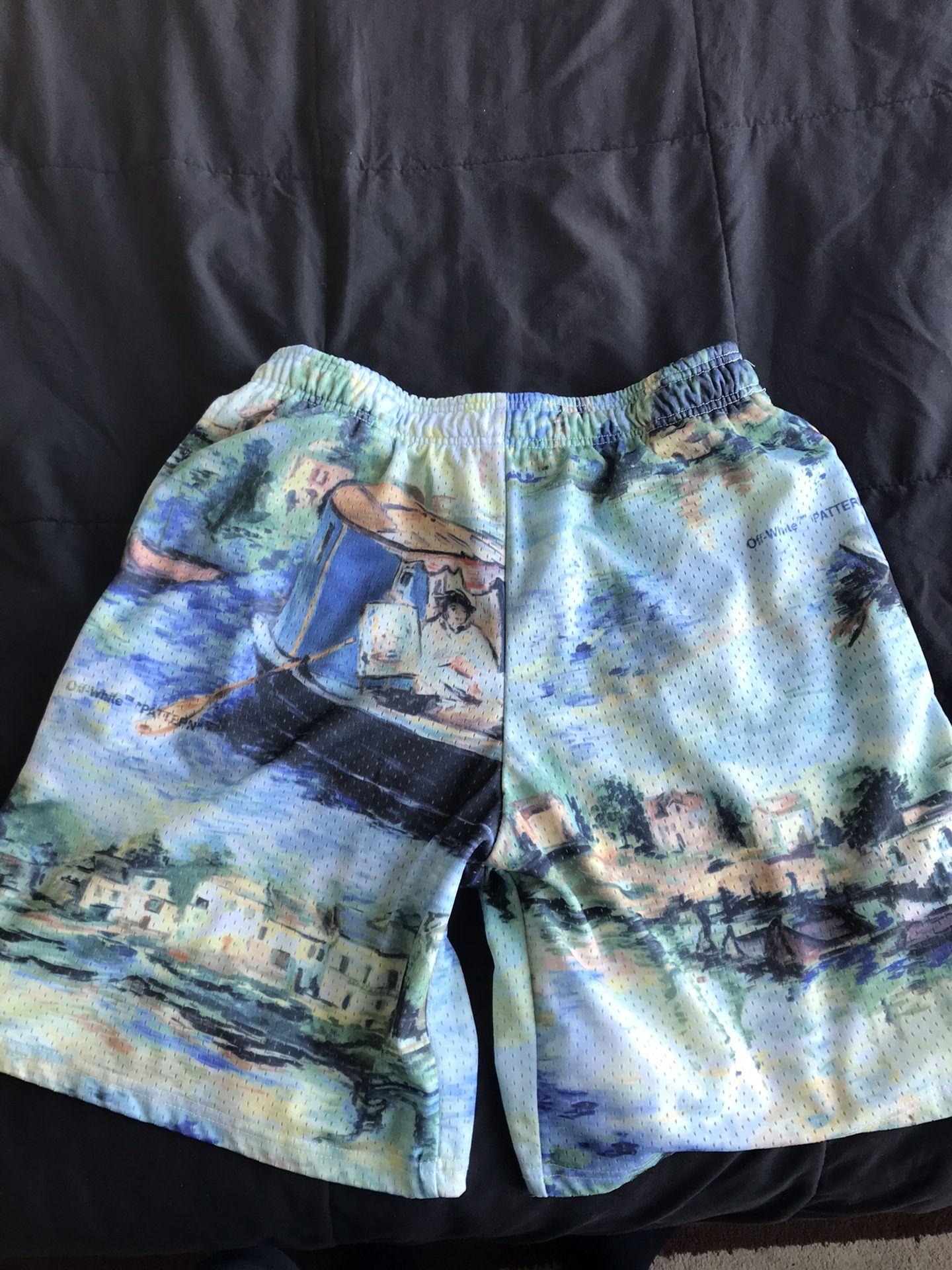 Virgil Ablogh off white OW “pattern” shorts. They are blue and made of a mesh material, great for summer/swimming. Great condition. VNDS 9.5/10 condition Check my page out for more gear. Will do bundle deals and some trades. Shoot me offers, worst I can say is no. 200 OBO