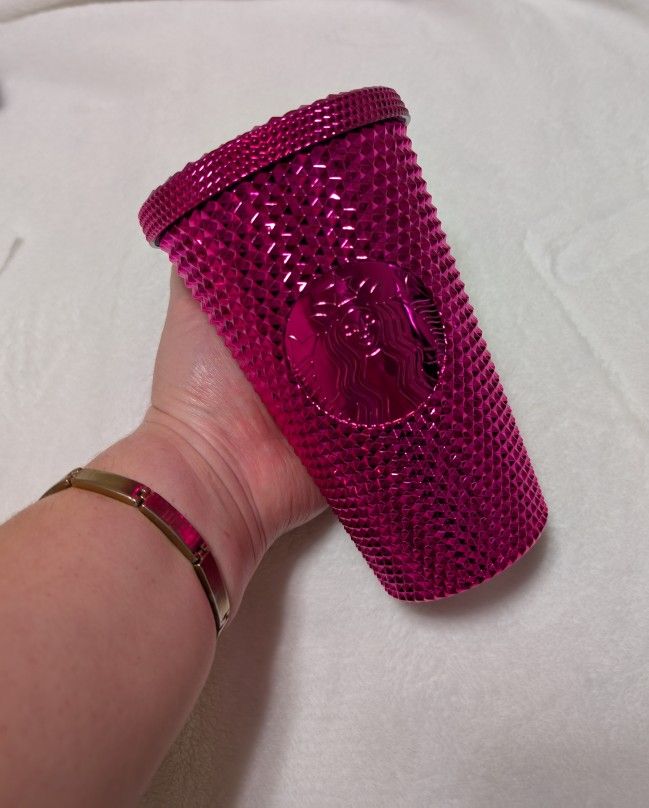 Starbucks 2022 Pink Bling Grande Metallic Studded Tumbler 16oz Cup
