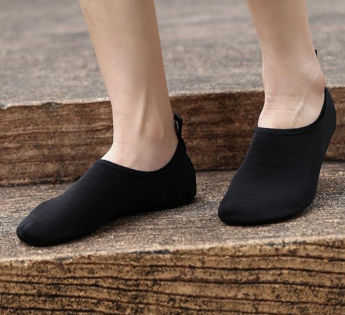 Metog For Men - Women Water Shoes Quick-Dry Aqua Socks Barefoot Slip-on for Beach Swim Sport Surf Yoga Exercise Color Black Size 10.5— 11.5