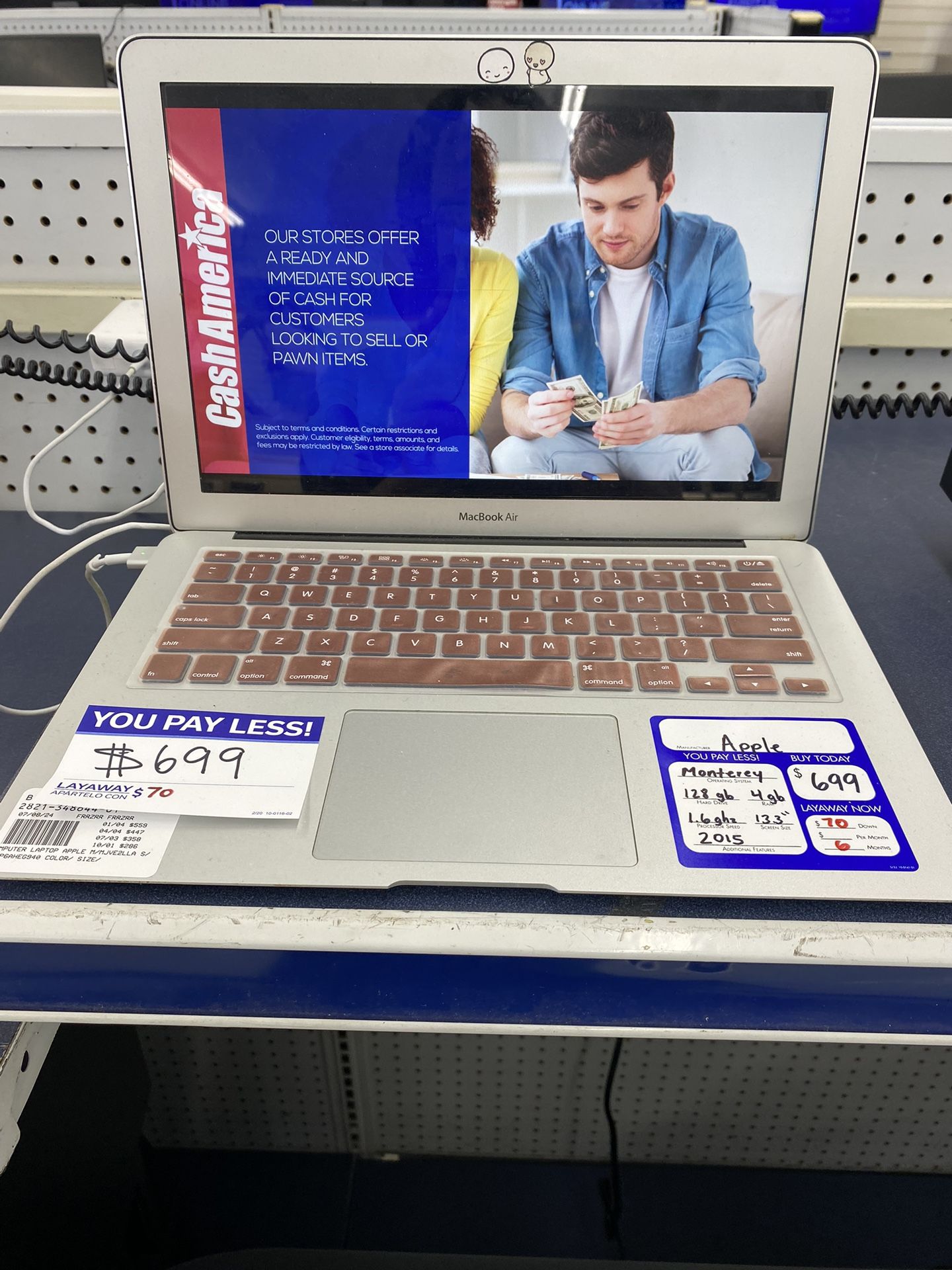 Macbook air silver monterey operating system, 128gb, 4gb ram, 1.6 processor speed with charger