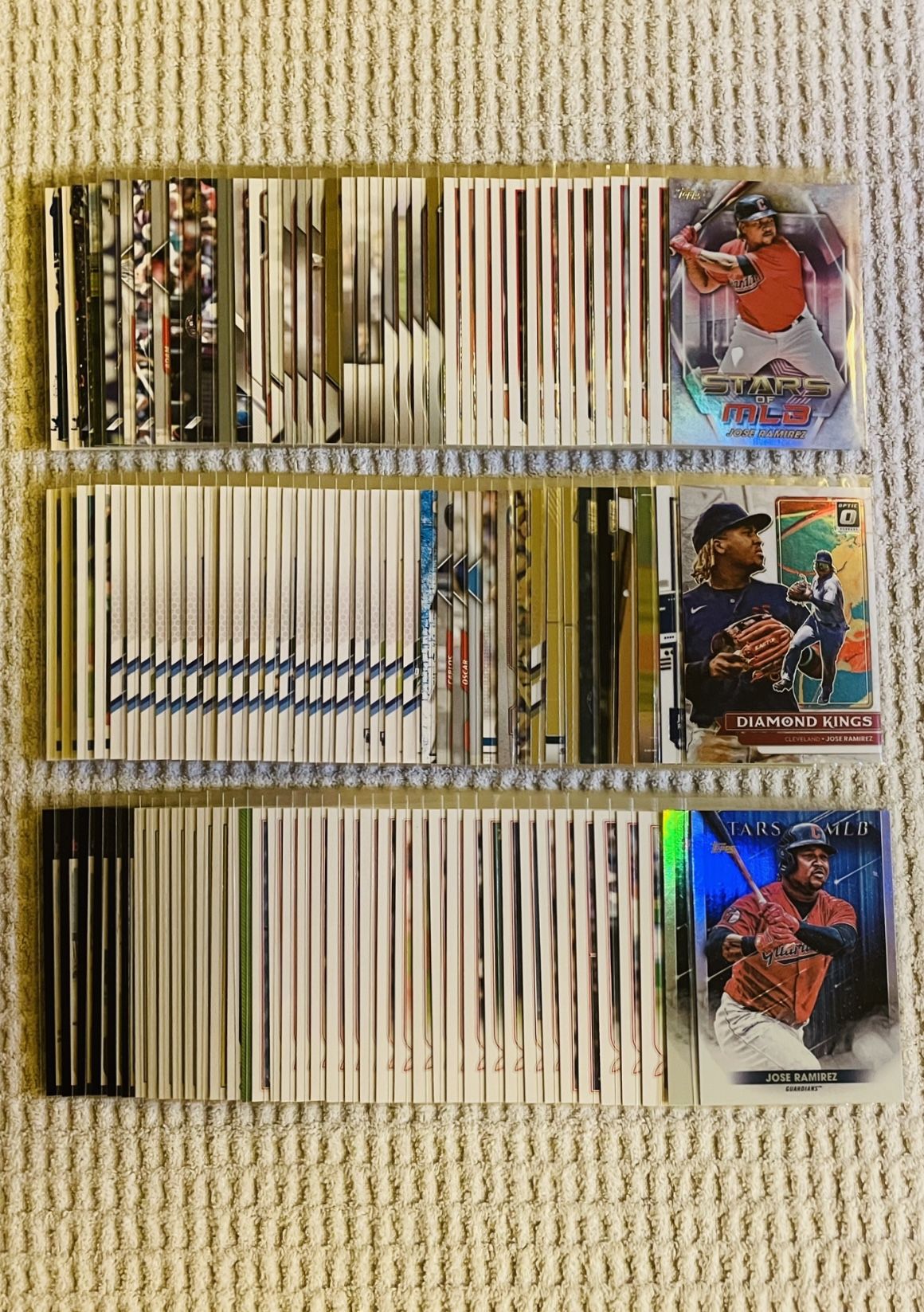 Cleveland Guardians / Cleveland Indians 120 Sports Card MLB Baseball Card Team Lot! All cards in mint condition! Rookies, prospects, All-Stars, HOFers, inserts, parallels, variations & more! Mix of Topps & Panini. Bowman, Bowman Chrome, Diamond Kings, Mosaic, Topps Chrome, Stadium Club, Stadium Club Chrome, Donruss, Donruss Optic, Series 1, Series 2, Update Series, Opening Day, Heritage, Gypsy Queen & more! Jose Ramirez, Josh Naylor, Steven Kwan, Andres Gimenez, Oscar Gonzalez, Myles Straw, Shane Bieber, Cal Quantrill, Triston McKenzie, James Karinchak, Eli Morgan, Sandy Leon, George Valera, Fran Alduey, Jhonkensy Noel, Chase DeLauter, Jaison Chourio, Dayan Frias, Satchel Paige, Bob Feller & much more! $42 for the lot! Local pick up & shipping available. Message for details. Thank you!