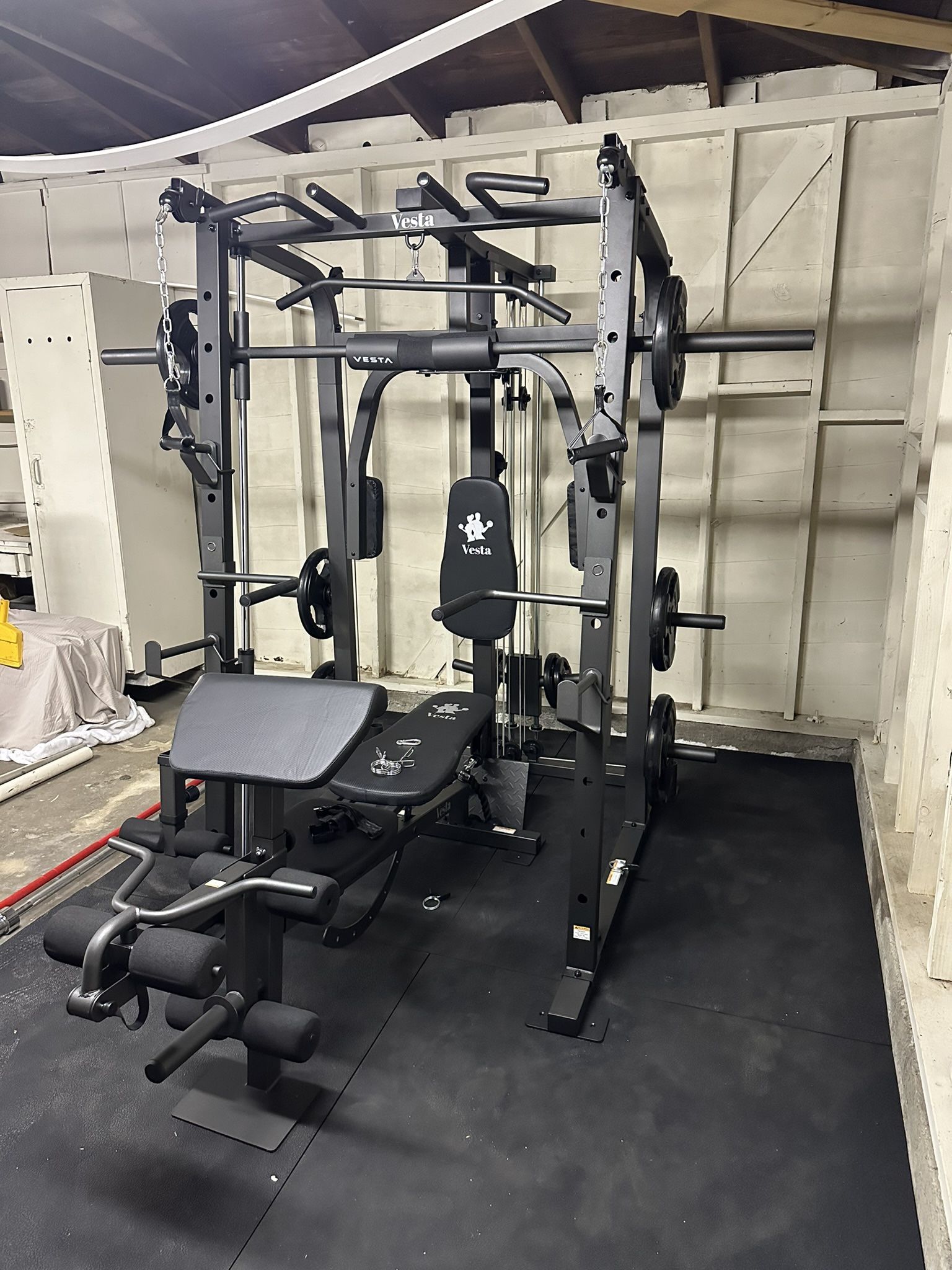 Vesta Fitness Smith Machine 1001 w/Bench Attachment | 230lb Bumpers Olympic Weights | 7ft Olympic Bar | Gym Equipment | FREE DELIVERYđźšš