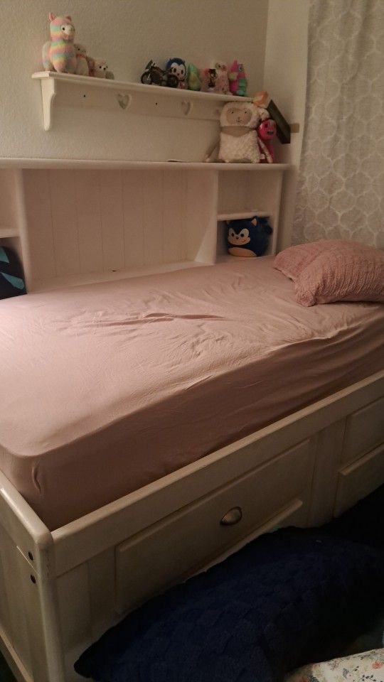 Solid Wood Twin Bed Frame With Hutch