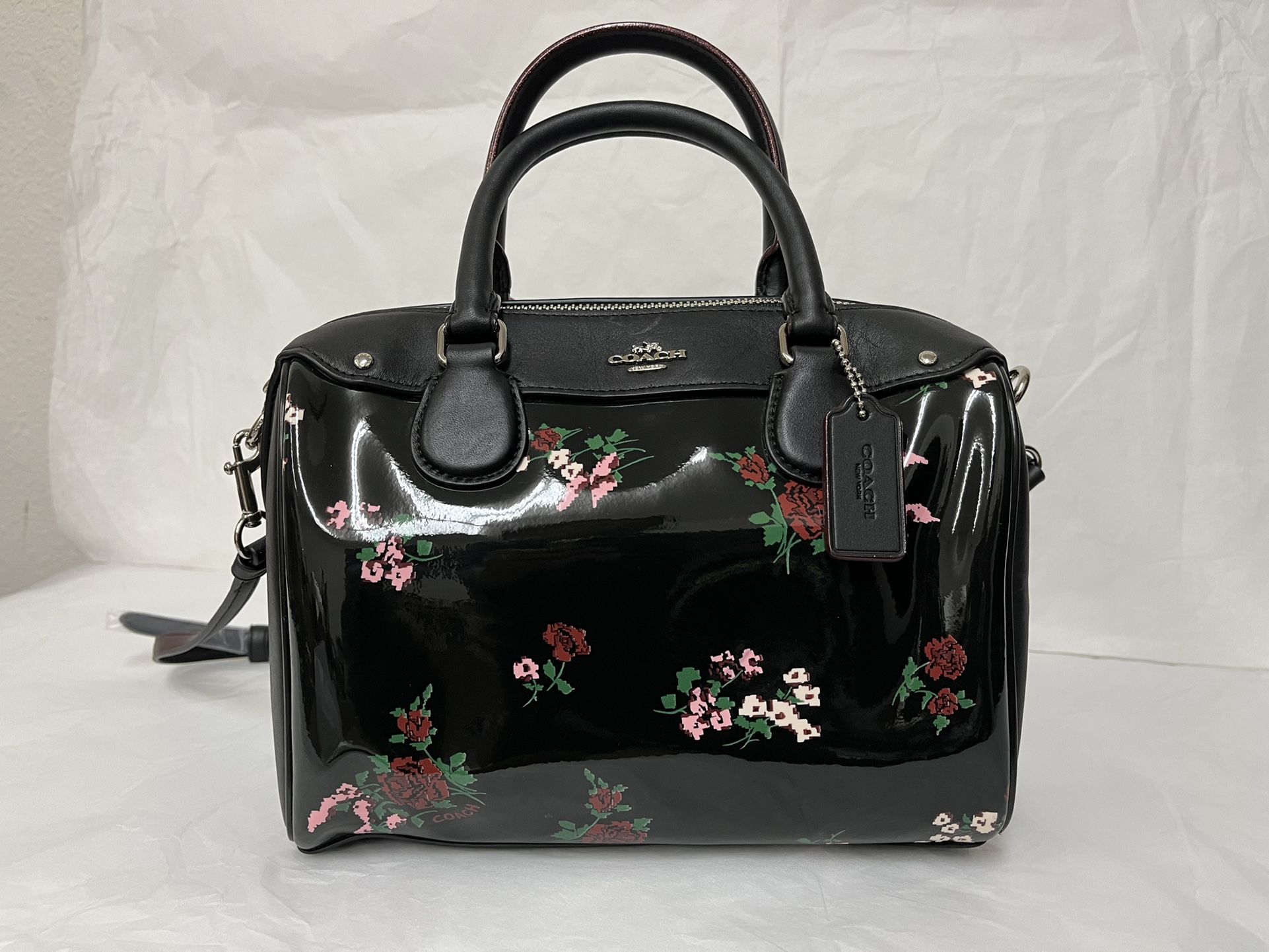 NWT Coach mini bennet satchel with cross stitch black floral print bag