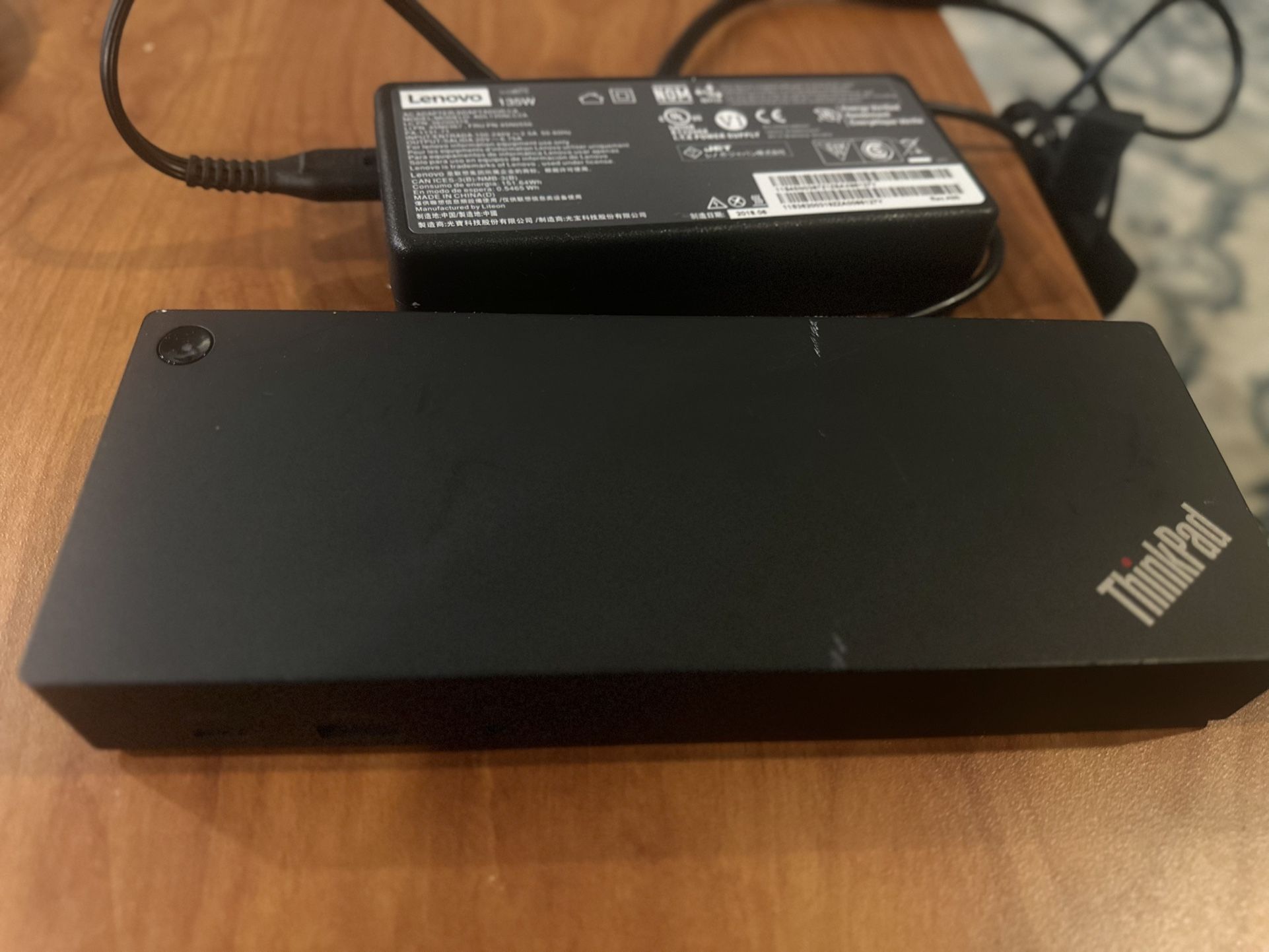 Selling a gently used Lenovo ThinkPad docking station, perfect for connecting your ThinkPad or compatible laptop to multiple monitors, USB devices, Ethernet, and more. Includes the original Lenovo power adapter. Everything works perfectly—just plug in and expand your workspace instantly. Compatible with many ThinkPad models. Great for a home office or improving your work efficiency. Pickup in Renton.