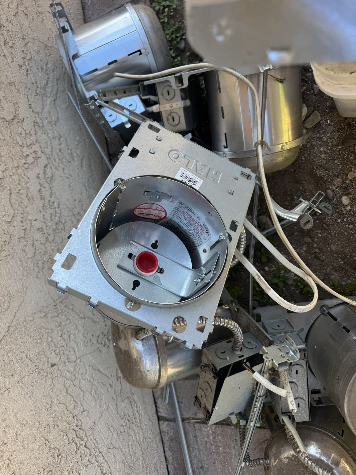 I have 8 sets of floodlight housing almost like new. Started a project and installed it onto the ceiling (brand new) and now changed my mind and decided to take it off. Never even placed a light bulb on to it. So like new. 100.00 for all 8 set- great deal…
