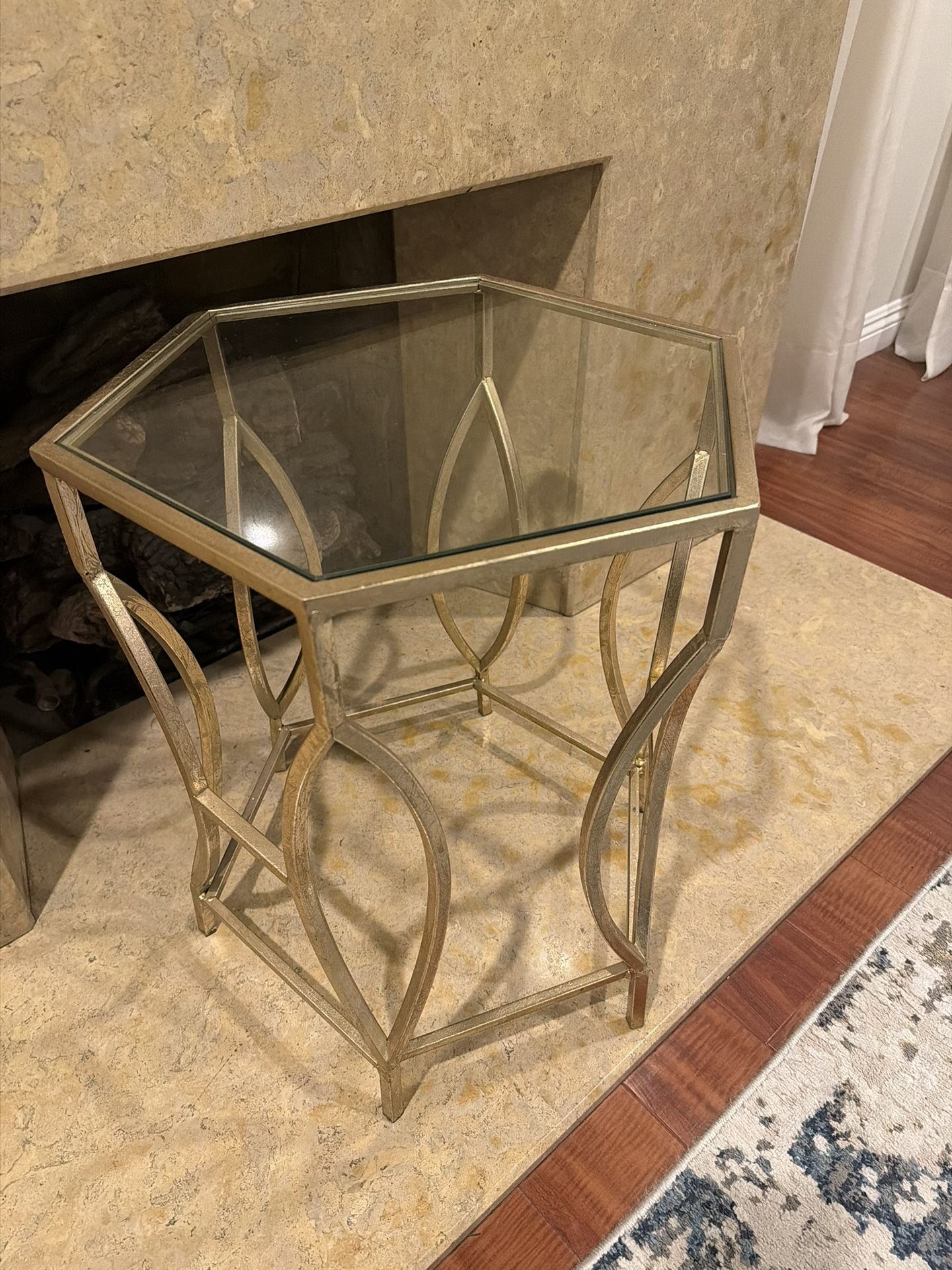 Gold Metal And Glass Coffee End Table