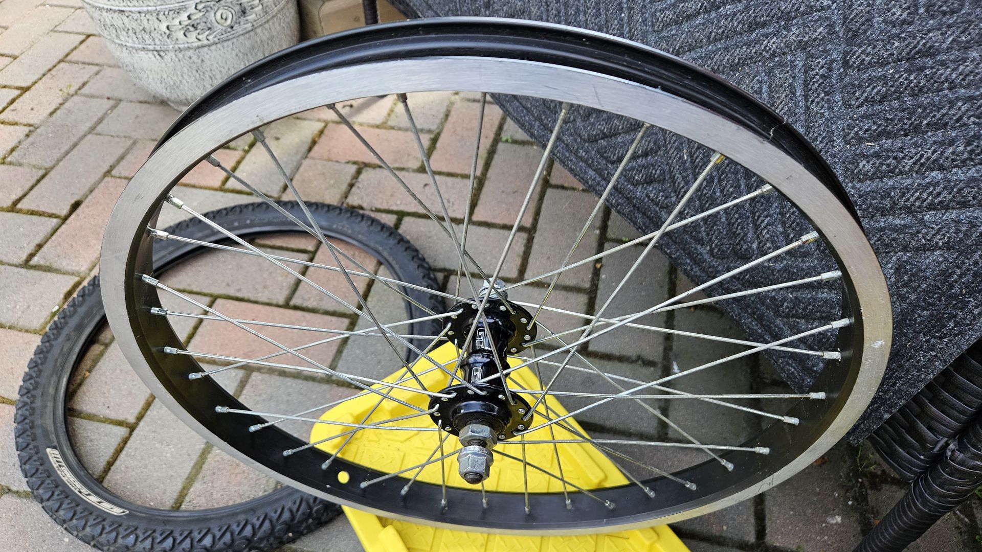 Front wheel and stem Front wheel needs a true but no damage, spins good Stem faded but full functional
