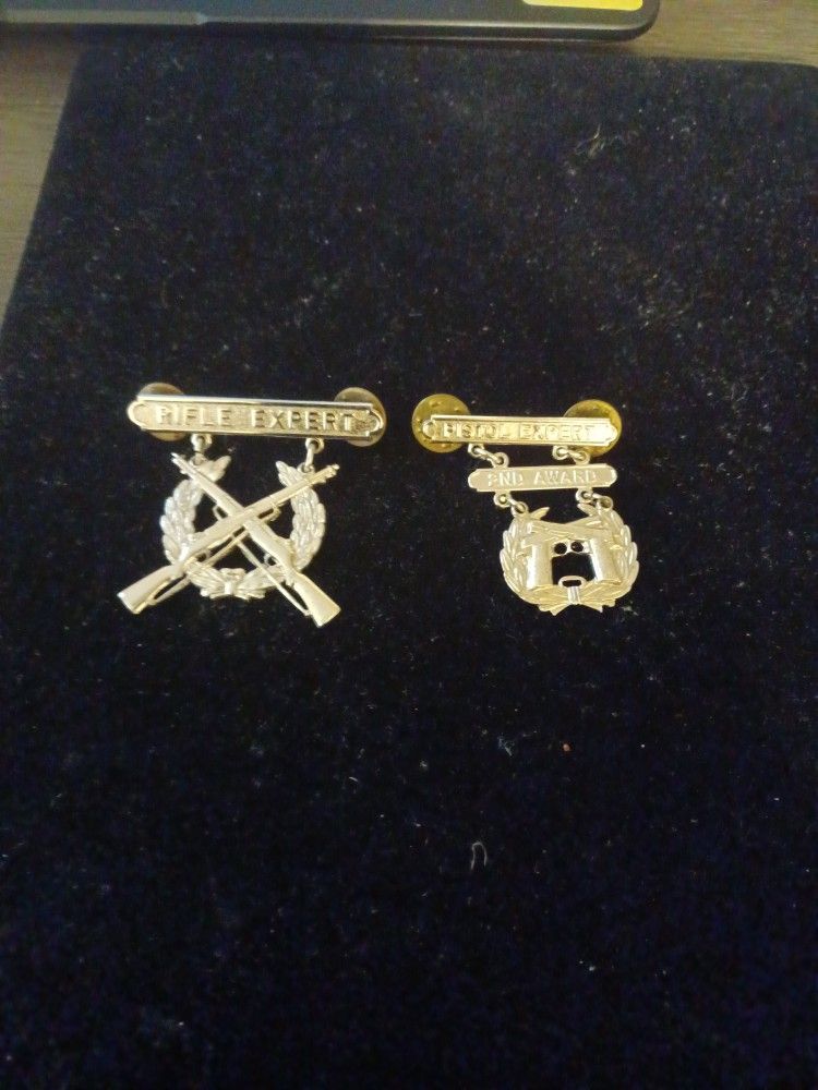 Very nice sterling silver rifle expert and pistol expert....hallmark..tested..OBO...These item are hard to find in sterling silver...Military or police...I accept cash app, square and cash..I ship for free with tracking number...