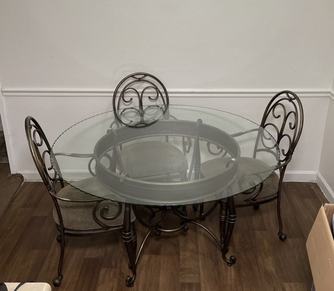 Great condition 3 rolling chairs Glass table top 54inches wide 3ft high Asking 80$pickup ready